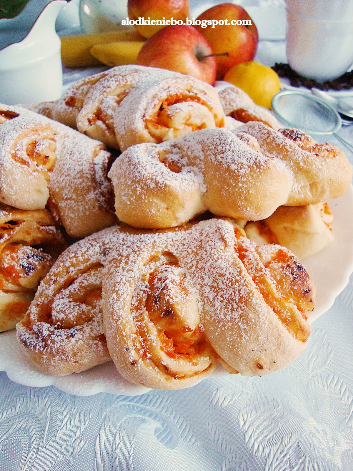 Pogoda za oknem nie zachęca do dłuższych spacerów, ale przecież krótki i intensywny spacer na pewno wyjdzie nam na zdrowie. Po takim spacerze każdy wraca do domu i marzy o czymś gorącym do picia. Warto więc do kubka kawy czy herbaty podać smaczną drożdżówkę z dżemem jabłkowo-marchewkowym. Jesienią przygotowywałam właśnie taką marmoladę i nadal zostało mi jeszcze kilka słoiczków, więc postanowiłam wykorzystać ją do bułeczek. Jeśli nie macie takiej marmolady w domu, śmiało możecie użyć innego ulubionego dżemu lub powideł. Polecam :)